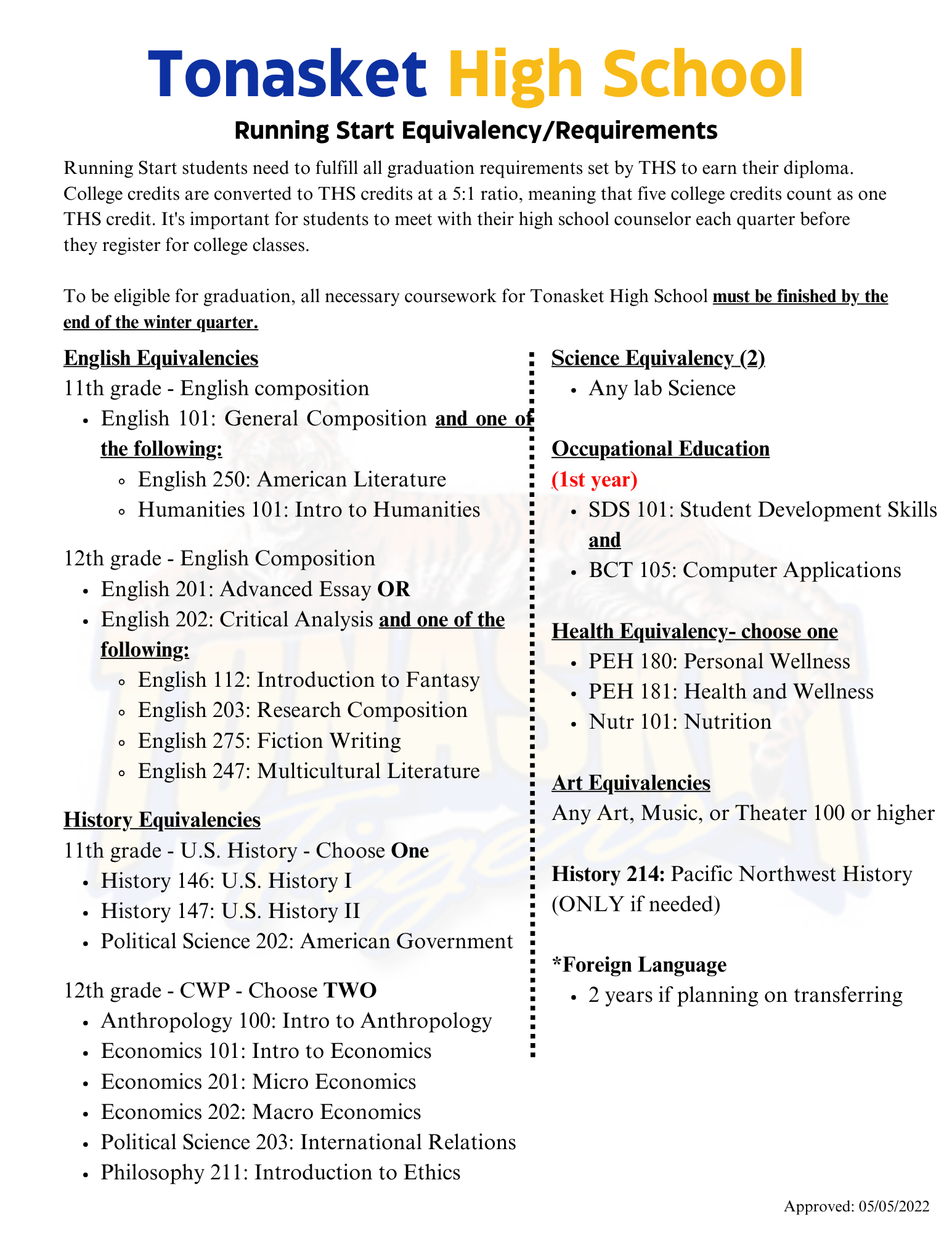In preparation for creating a 2 year plan with your adviser, you can find degree worksheets and high school equivalencies below: